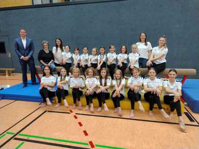 Dank der Unterstützung von Herrn Leschhorn von der BW-Bank konnten die Gerätturnerinnen ihre neuen Shirts in Empfang nehmen- ein sichtbares Zeichen für Zusammenhalt, Teamgeist und die Verbundenheit zwischen Sport und Wirtschaft.